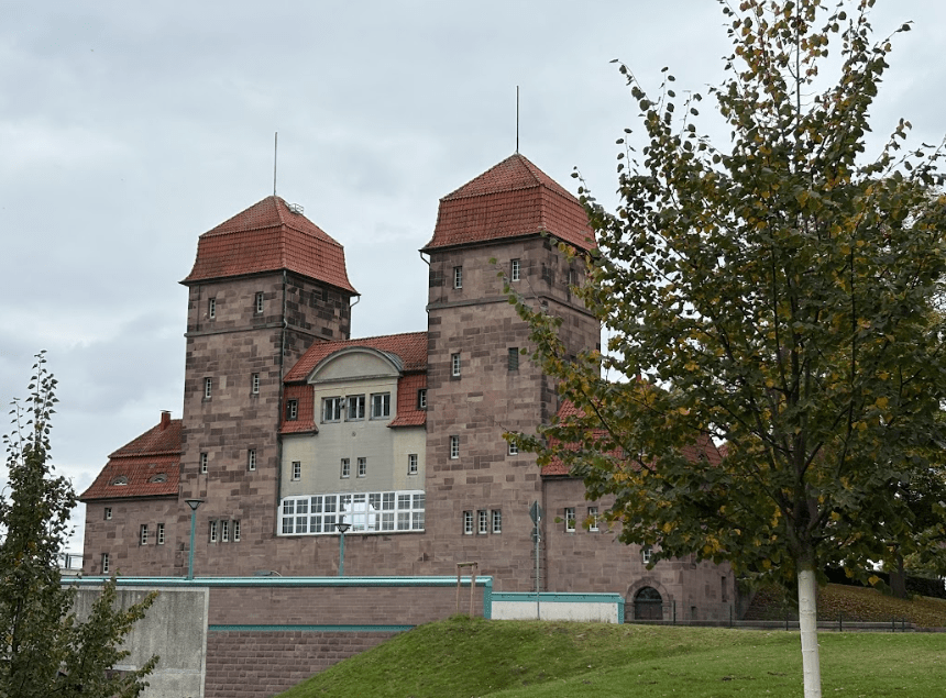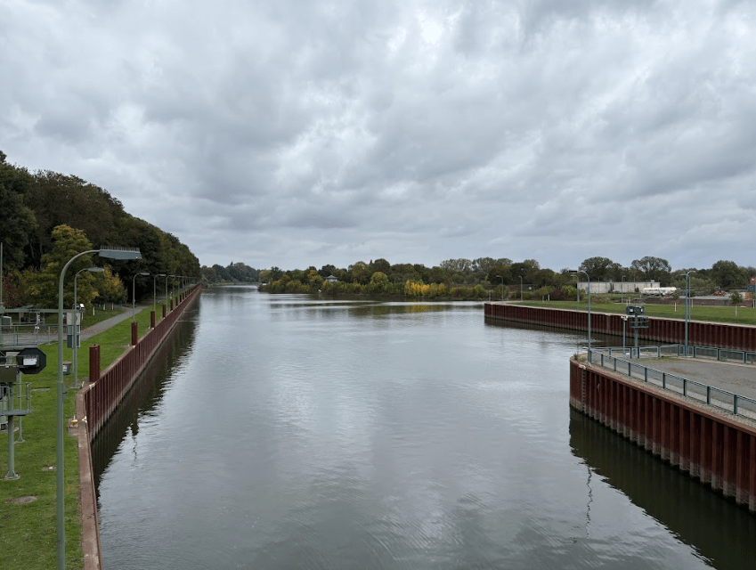 Der Eingang zur Schachtschleuse. Die Schachtschleuse Minden wurde 1914 fertiggestellt und stellt laut Wikipedia damit die kürzeste Verbindung zwischen Mittellandkanal und Weser her.